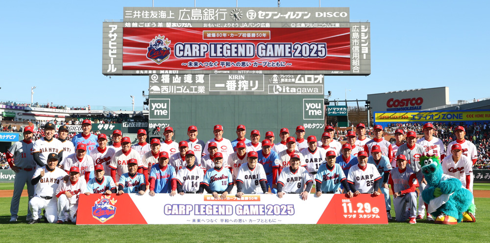 Carp Legend Game実行委員会(広島カープOB会、広島テレビ放送株式会社、株式会社中国新聞社)は、2025年11月29日(土)に2022年3月以来となるカープOB戦「Carp Legend Game 2025」を開催します。2025年は広島にとって忘れ得ぬ、被爆から80年の節目の年であり、広島東洋カープのセ・リーグ初優勝から50年の節目でもあります。広島復興のシンボルと言われるカープの歴代選手たちが、「未来へつなぐ 平和への思い カープとともに」をテーマに、紅白戦やレジェンド対決などを通し、ファンとともに、広島の地から全国、そして全世界に向けて平和への思いを発信します。