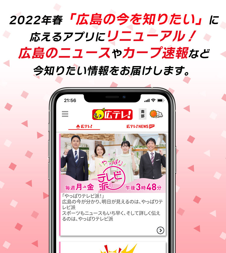 広島テレビアプリは無料でご利用いただけます。通信にかかる費用はお客様のご負担となります。