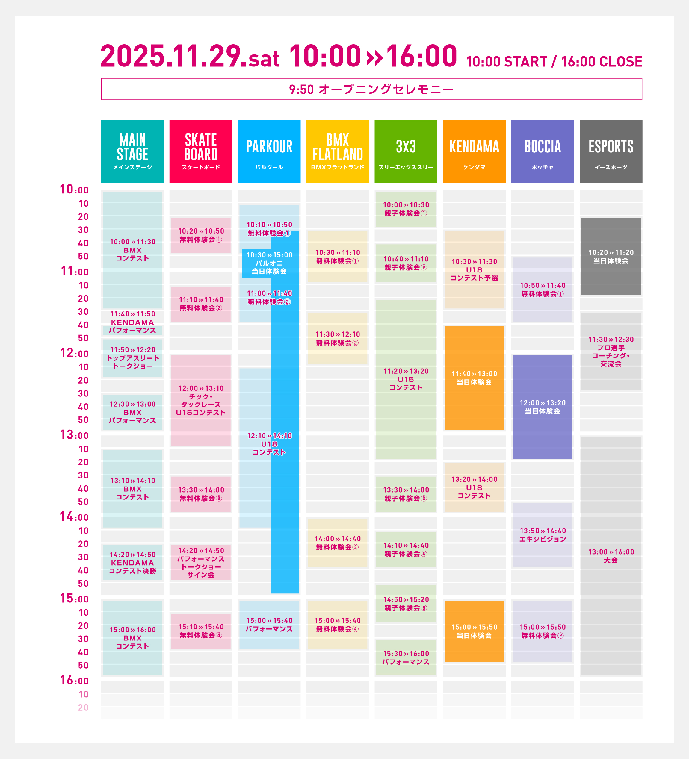 ※11月29日(土)が雨天延期となった場合、eスポーツは翌日30日(日)への延期をせず中止となります。